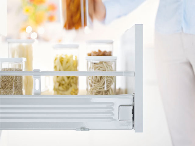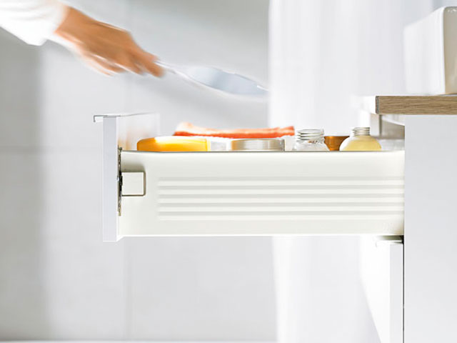 Los cajones y módulos extraíbles METABOX constan de muy pocos componentes. Use el probado sistema BOX para las más diversas aplicaciones en la cocina, el recibidor y el baño o en la oficina: METABOX incluso se puede utilizar en instalaciones comerciales. Sus materiales robustos y un montaje a conciencia garantizan los mejores valores de estabilidad, hasta una carga dinámica máxima de 30 kg.