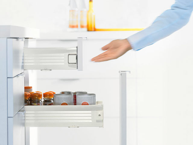 La función BLUMOTION, probada en millones de ocasiones, también está disponible para el módulo extraíble parcial METABOX. Para que los cajones y el módulo extraíble siempre se cierren de modo suave y silencioso. Independientemente de la fuerza con que se cierren y del peso de los artículos guardados. Especialmente práctico y económico: Si usa cuerpos con un ancho que no sobrepasa los 900mm, basta con una sola unidad BLUMOTION.