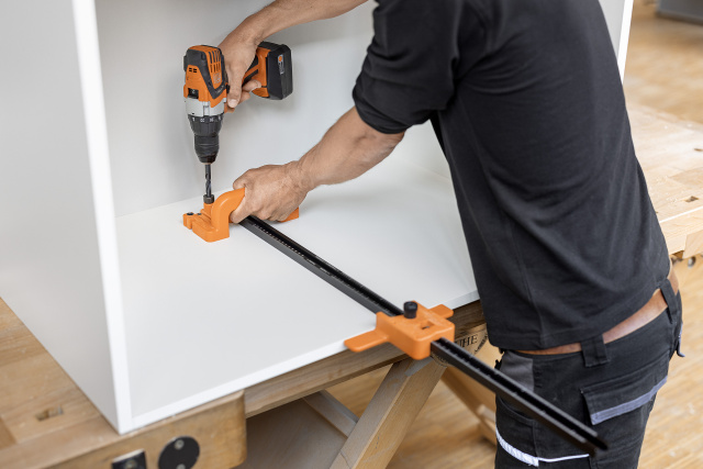 - Calibre para marcar o taladrar previamente las posiciones de fijación de los alojamientos de perfil