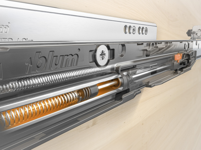 La flexibilidad de instalar diferentes tecnologías de movimiento con una sola guía y una óptima función de amortiguación adecuada a la tecnología correspondiente: esto es lo que ofrece nuestra nueva guía BLUMOTION S para MOVENTO.