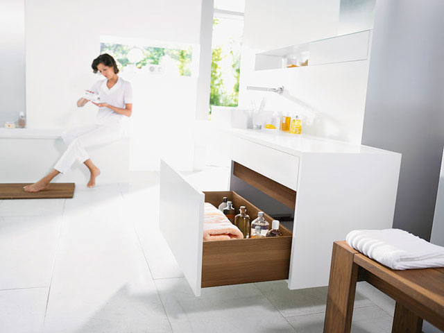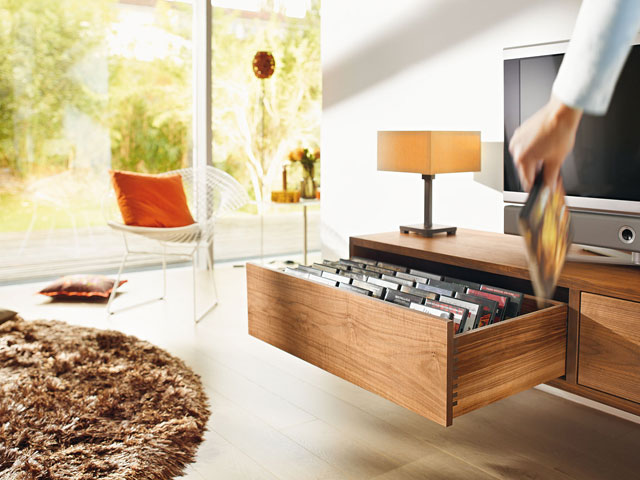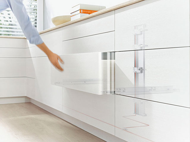 TANDEM, el sistema de guías ocultas para cajones de madera: deslizamiento ultraligero y gran comodidad de uso en todas las áreas del hogar, El amplio programa TANDEM cuenta con la solución adecuada para cada mueble. Incluso los sistemas de módulos extraíbles con cargas pesadas se deslizan de modo ultraligero y convencen con sus muy buenos valores de caída.