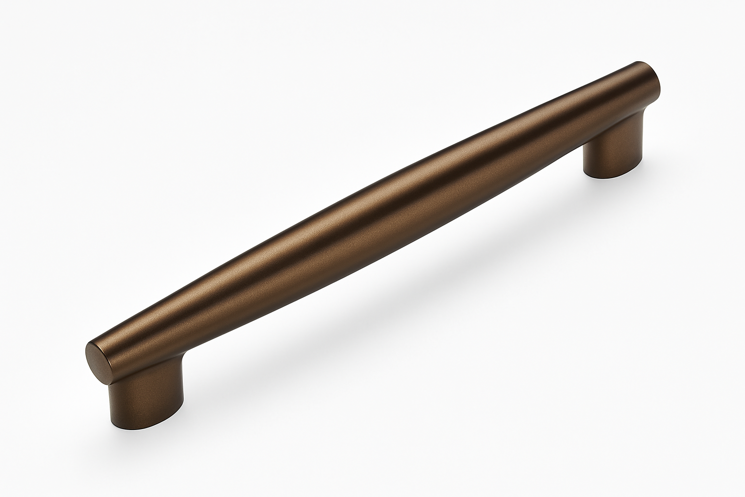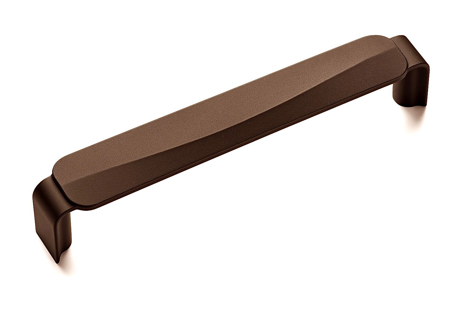 Tirador modelo MARKUS de material Zamak (aleación de Zinc, Aluminio, Magnesio y Cobre), acabado acero bronce y negro mate, disponible en paso de 160 mm.
