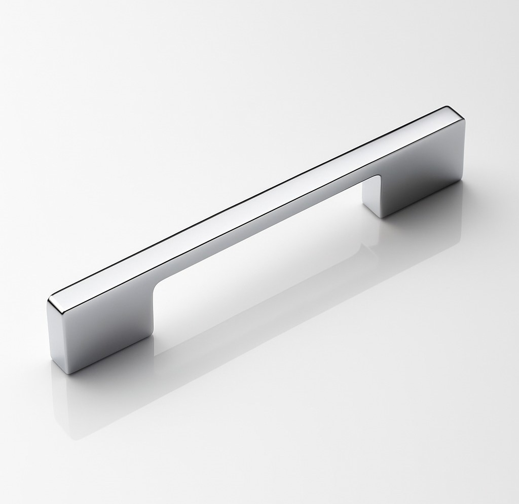 Tirador modelo NEO de material Zamak (aleación de Zinc, Aluminio, Magnesio y Cobre), acabado cromo, disponible en paso de 160 mm